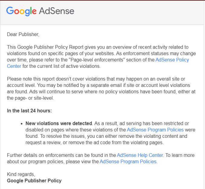 Google Adsense Launching Detailed Policy Violation Notifications Adsense Publisher Policy Violation Report