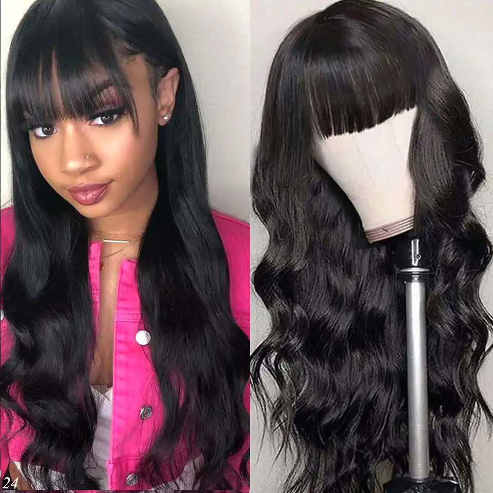 150 Density Short Bob Body Wave Wig With Bangs Full Machine Made Bob Wig With Bangs Remy Wavy Human Hair Wigs For Black Women Aliexpress Aliexpress Hair Wigs