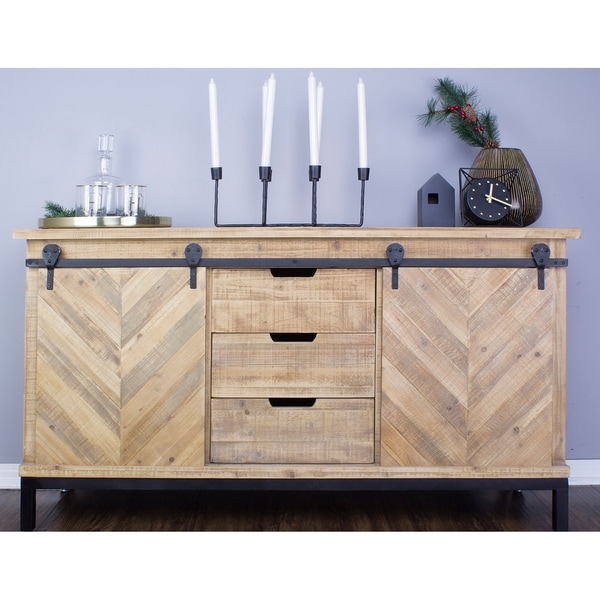 Shop Knightsbridge Barndoor Mid Century Wood And Metal Buffet Cabinet On Sale Overstock 19759055 Barn Door Buffet Cabinet