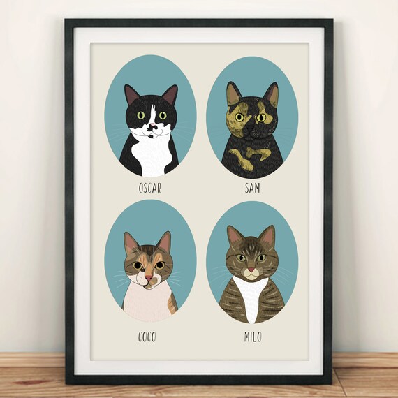 Hand Drawn Cartoon Cat Print Pattern Bright Colorful Cute Etsy Etsy Cartoon Cat