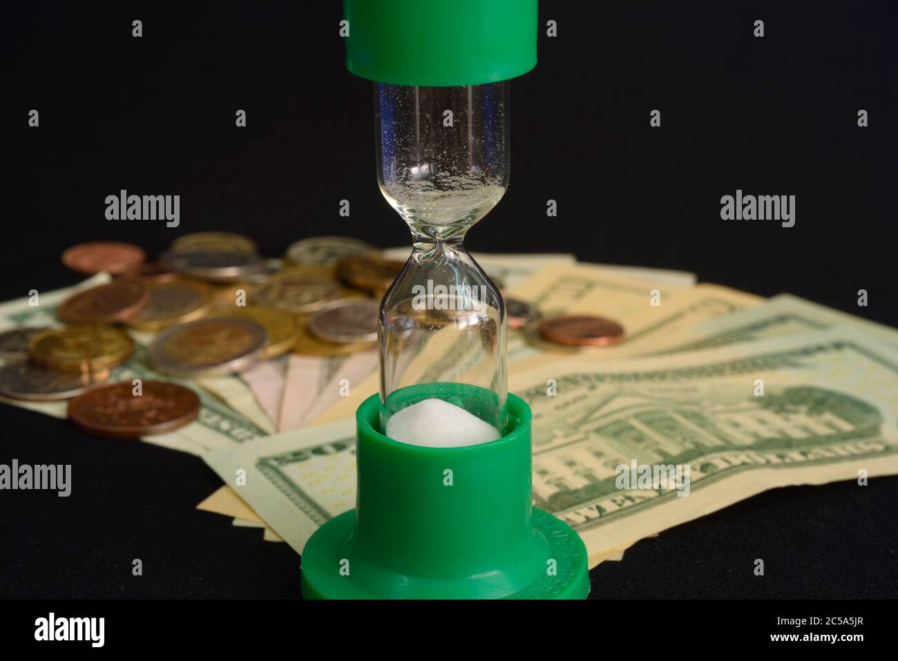 An Empty Sandglass Put On A Blurred Coins And Usa Banknotes Background Time Is Run Out It Is Time To Make Money Stock Photo Alamy Make Money In Usa