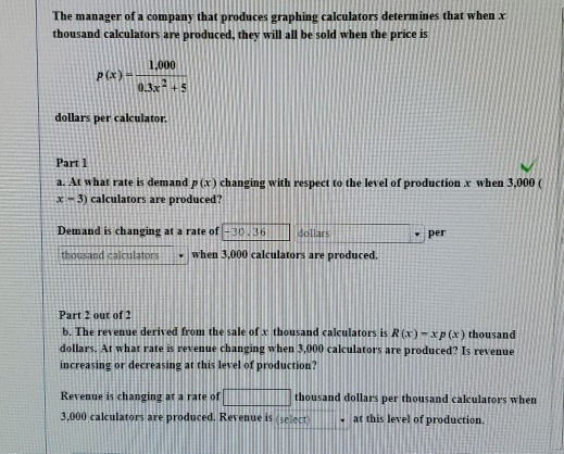 Solved The Manager Of A Company That Produces Graphing Ca Chegg Com Per Thousand Calculator