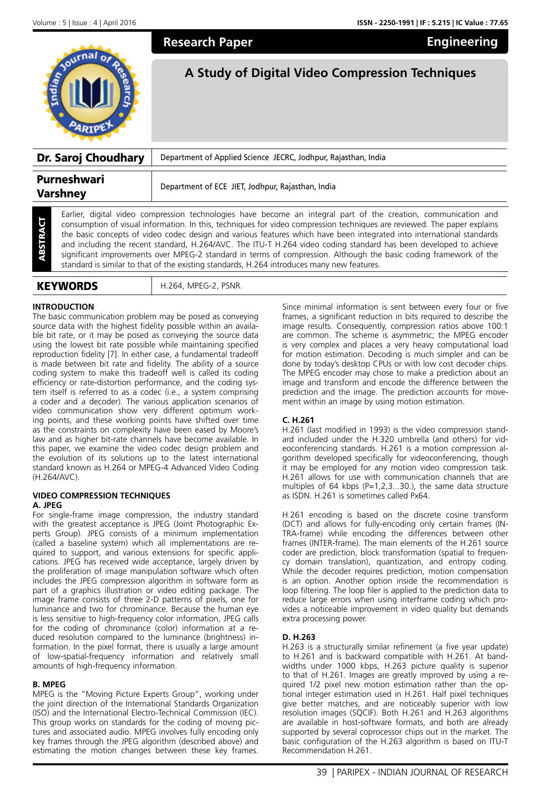 Research Paper A Study Of Digital Video Compression Techniques Manualzz Video Compression Standards