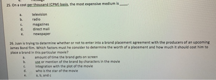 Solved 25 On A Cost Per Thousand Cpm Basis The Most E Chegg Com What Is A Good Cpm For Radio